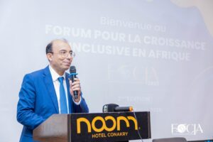Le Forum a été officiellement ouvert par M. Amara Almamy Camara, CEO de Guinean District Group, délégué général de l’Institut Guinéen des Administrateurs et président du FOCIA. À ses côtés, M. Anis Jaziri, président du Tunisia Africa Business Council (TABC), également membre du comité d’organisation.